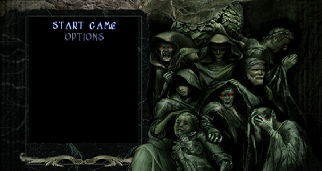 I thought this was a pretty creepy title screen, not only that...what the crap is with all that empty black space!? Seriously, I only have 2 frickin options, what did you give me room for like 10 more options? I don't get it. But the statues faces do change randomly.
